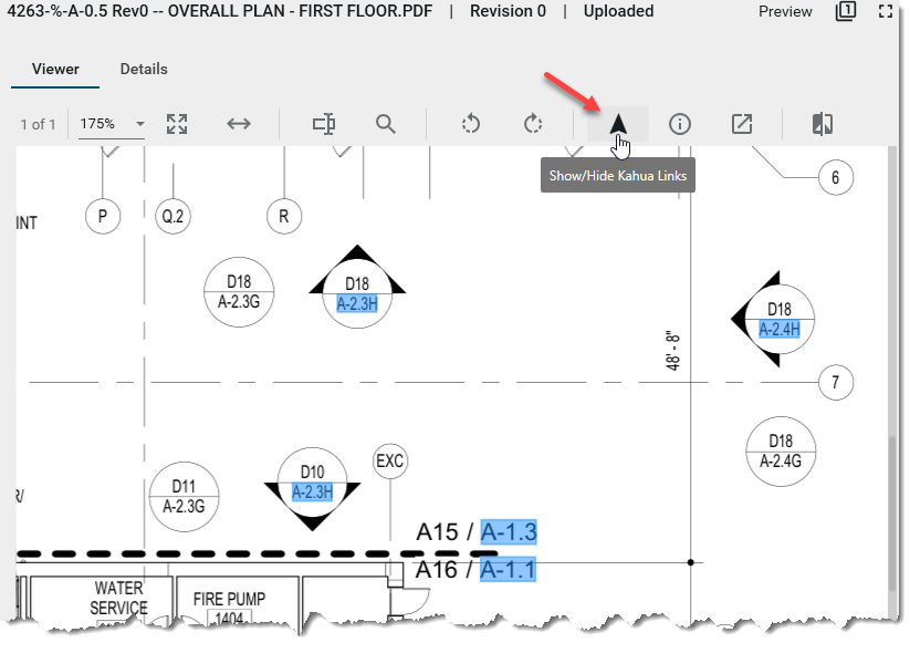 When drawings are added to a Controlled Folder, hyperlinks will now be automatically generated. These hyperlinks allow you to navigate to Section Callouts, Detail Callouts, and other types of Drawings references, with the ability to easily return back to the document where the hyperlink was initiated. There is a new tool in the markup panel that allows you to manually create new hyperlinks and modify existing hyperlinks.