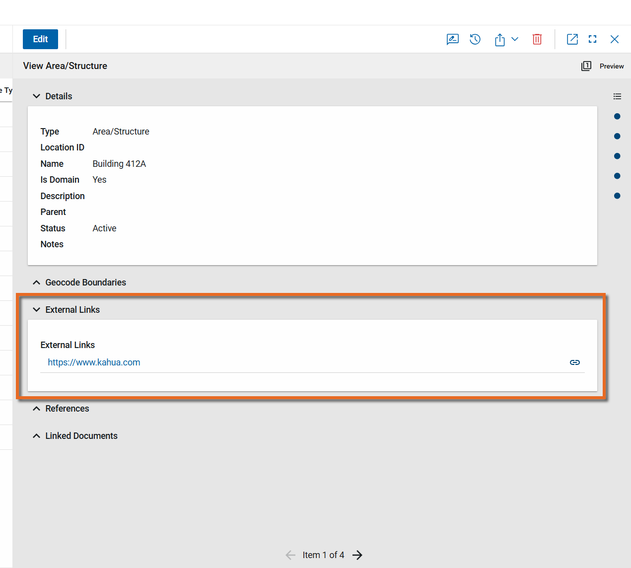 By default, the name of the hyperlink will be the URL. This can be modified when the record is in Edit mode by selecting the pencil icon and editing the title.