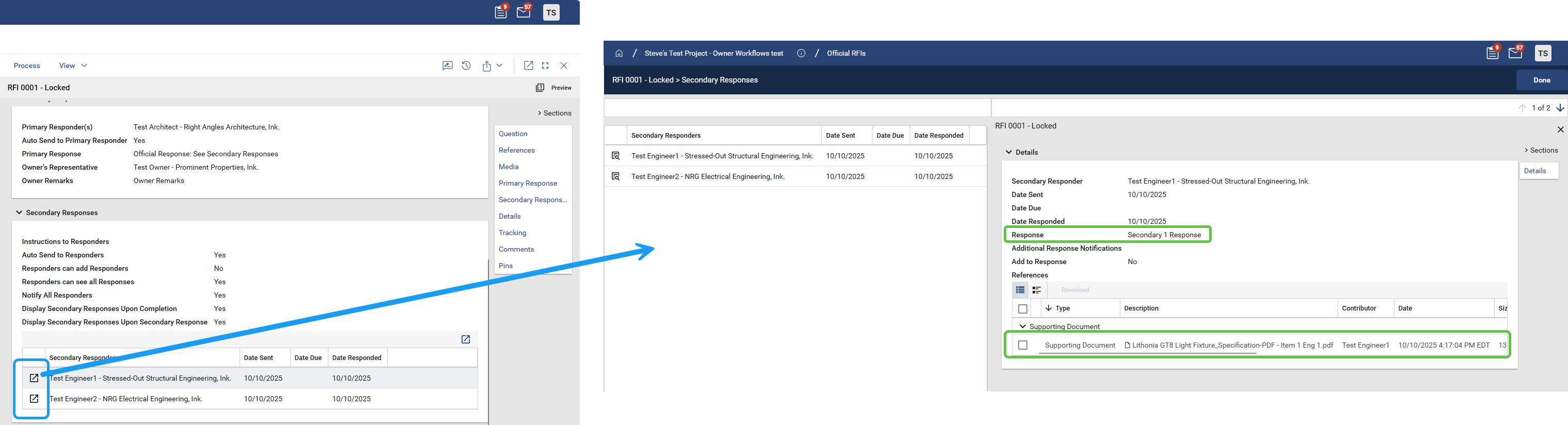 By default, in Kahua, RFI Secondary Responses and Submittal Consultant Responses are visible only to the Official / Primary Responder and the Owner’s Representative. This ensures that the Official / Primary maintains their role as the “gatekeeper,” determining the final content of the official response sent back to the Coordinator.