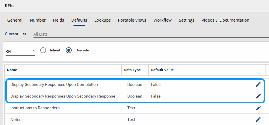 RFIs - Added new configuration option for displaying secondary responses