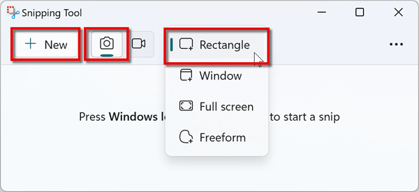 You can use any screenshot tool available to you. If you don’t have a preferred screenshot tool, you can use the Windows built-in snipping tool. To use the built-in tool, enter “Snipping Tool” in the Windows Search bar to locate and open the application. Select the image icon