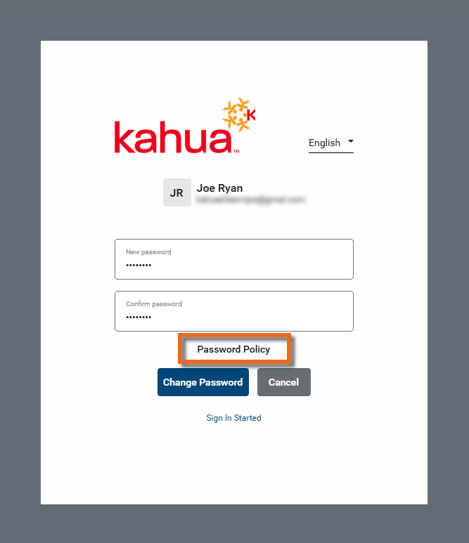 Kahua has a self-service password change and reset model. No administrator or Kahua employee has access to any user's password.