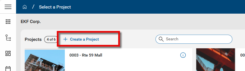 Create a Project - Users with the appropriate permissions have the option to create a new project by selecting Create a Project. For more information, refer to Creating a new project.