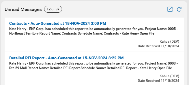 The twelve most recent messages you have not yet read appear in the Unread Messages section. The total number of unread messages appears in the header.