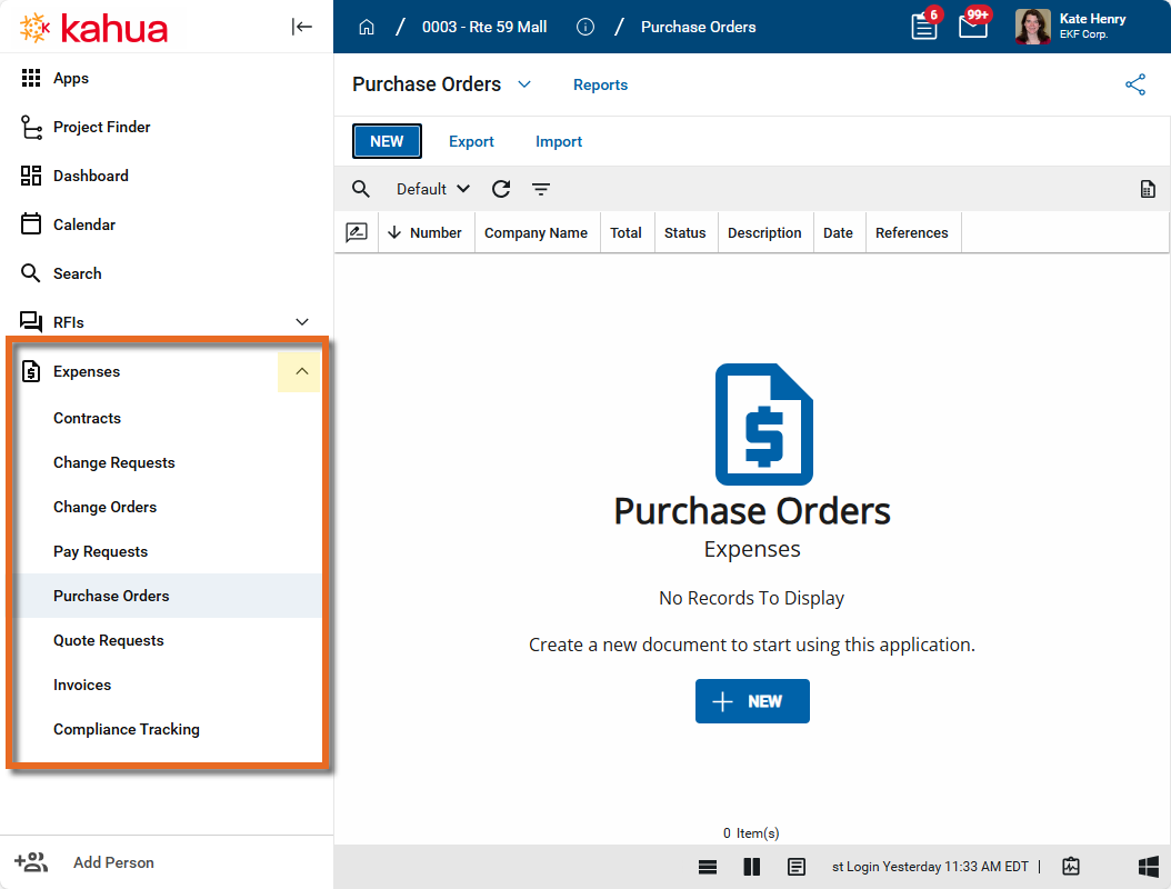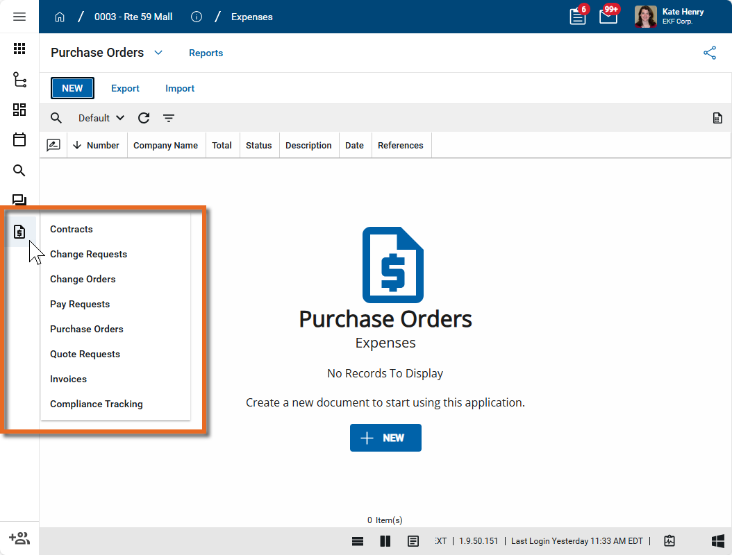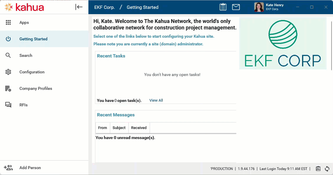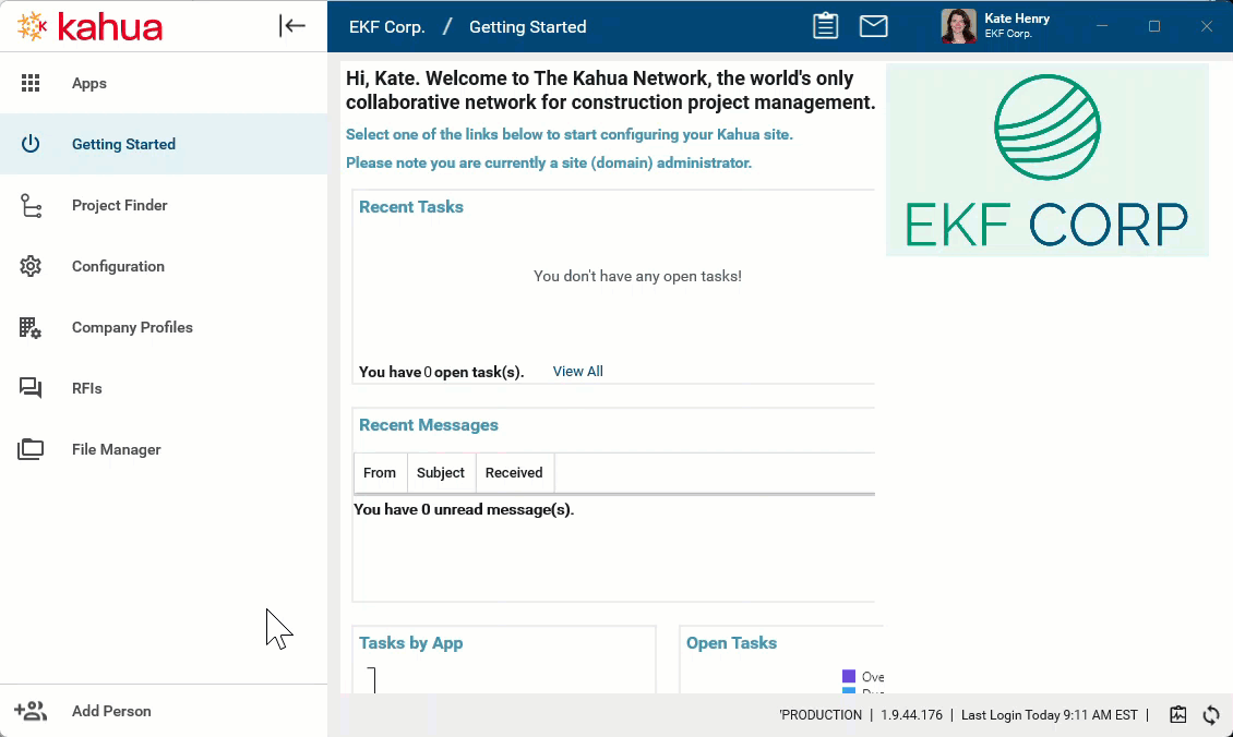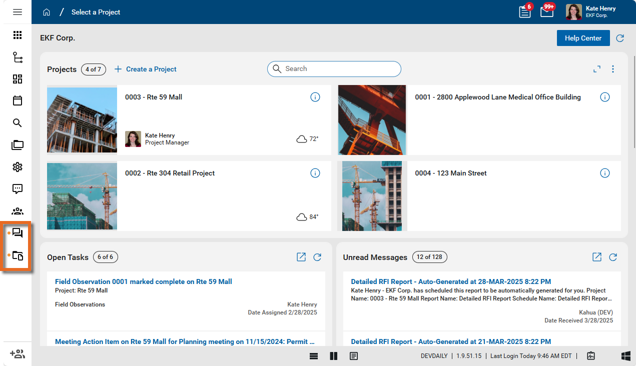 The launch bar will always be present on the left side of Kahua, but you can set it to the expanded or collapsed view. Click the collapse icon