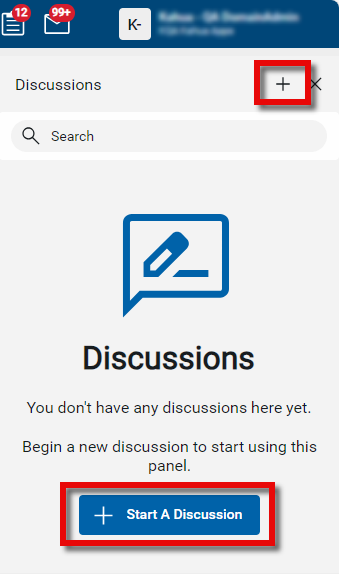 Any existing discussions that you have access to will appear in the panel. To start a new discussion, click the Add icon