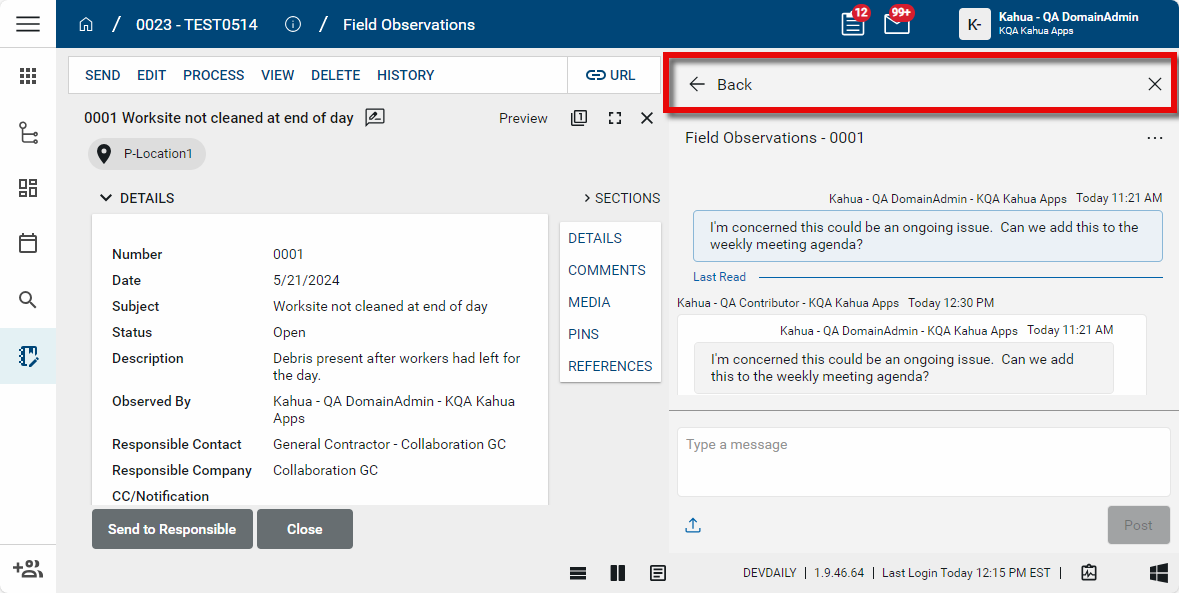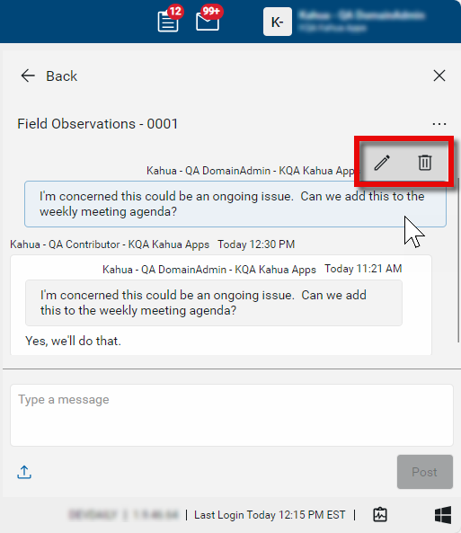 If a discussion is public, it can be viewed by all Kahua users that have access to the associated record.