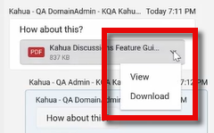 Files can be uploaded and added to posts in a discussion. These files can be viewed and downloaded by all other users in the discussion.