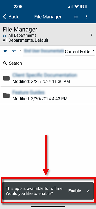 This option only appears for the File Manager application. To manage offline access for individual file manager folders, complete the following steps: