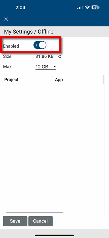 | Enabled | Toggle this option on or off to enable or disable the Kahua Offline feature. |