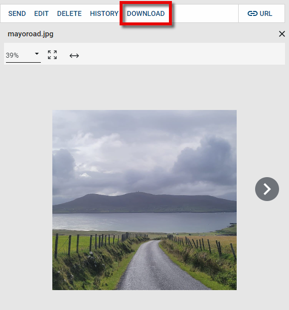 To download an individual file, select the file to open the detail view. Select Download from the action bar.