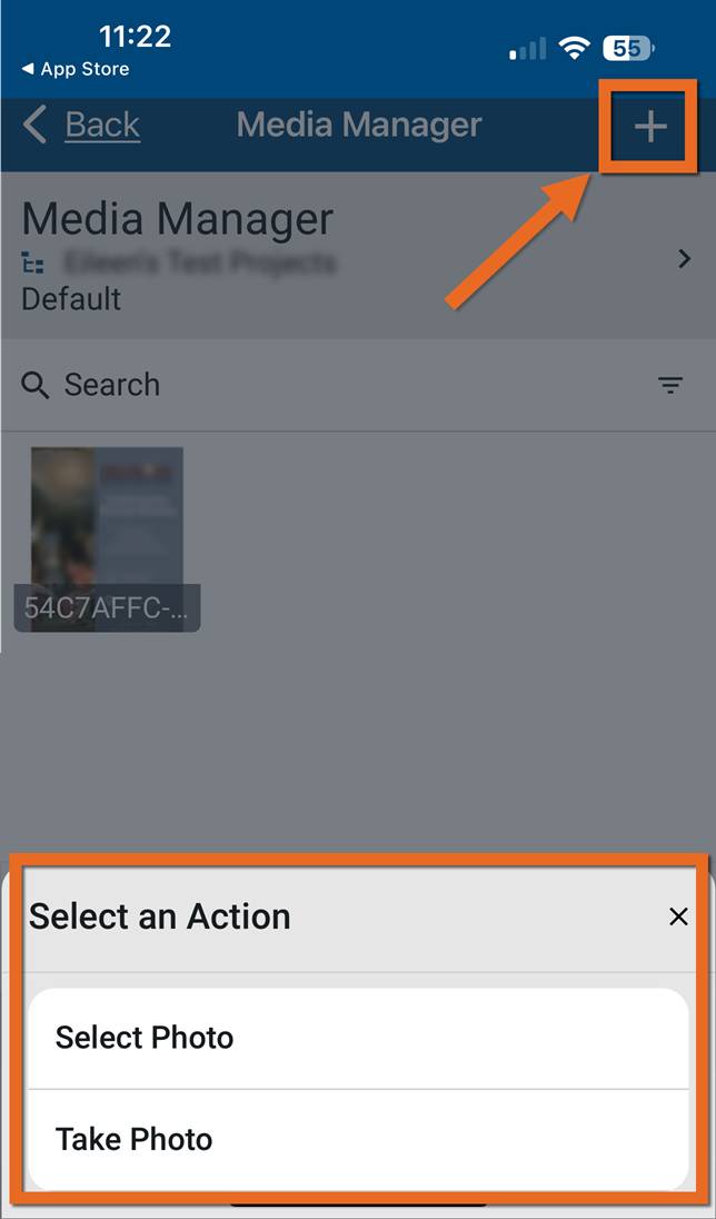 Users can also upload photos directly into Media Manager to be part of the project record. Photos added to the Media Manager app can be added to records with a Media section in other apps by selecting Add Kahua Photo. For more information on using the Media section on a record in another app, refer to Media section.