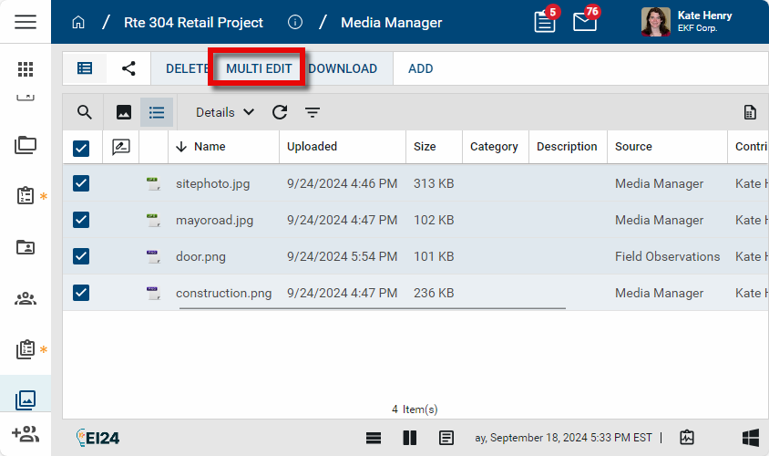 You can update several detail fields for media manager records at one time by using the Multi Edit function.