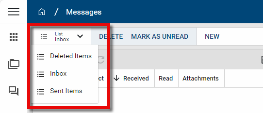 Click the list drop-down menu. Select Deleted Items, Inbox, or Sent Items. The selected view will appear.