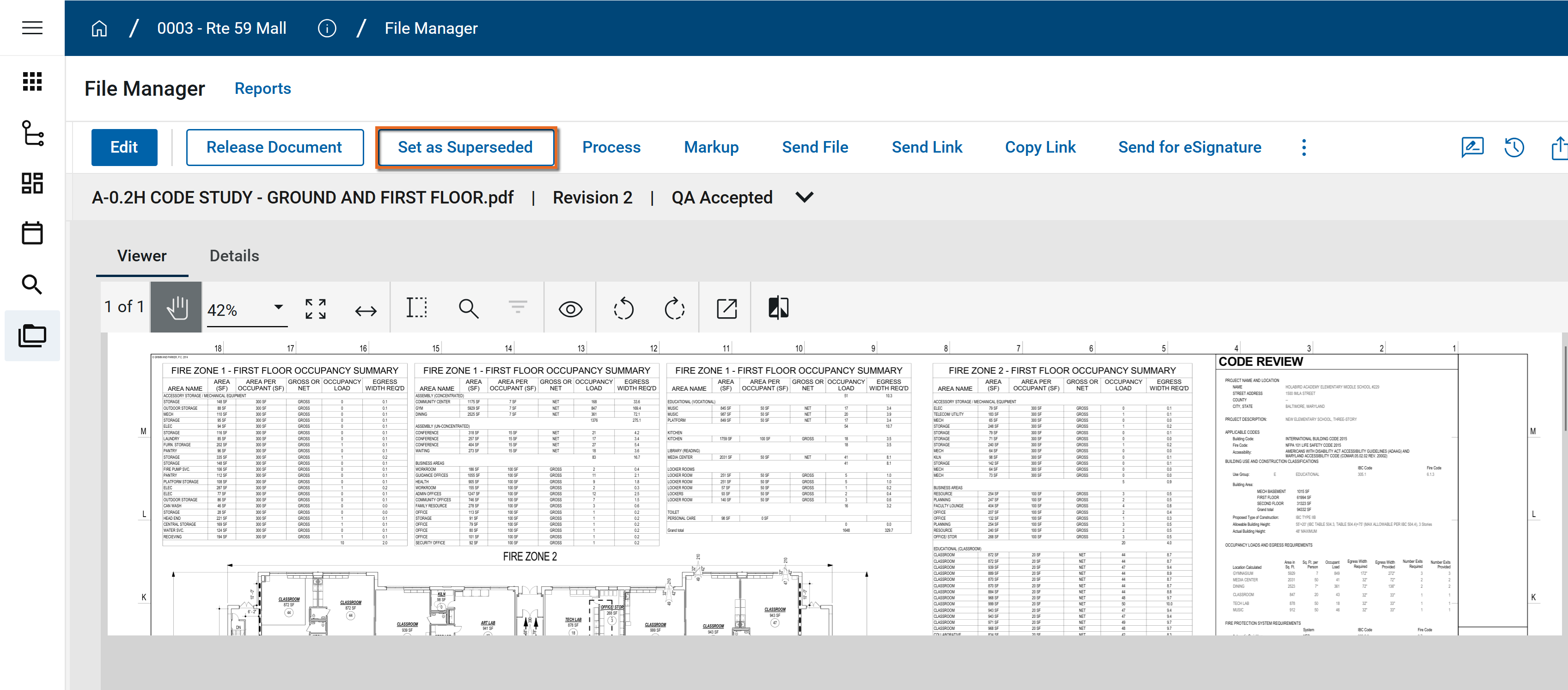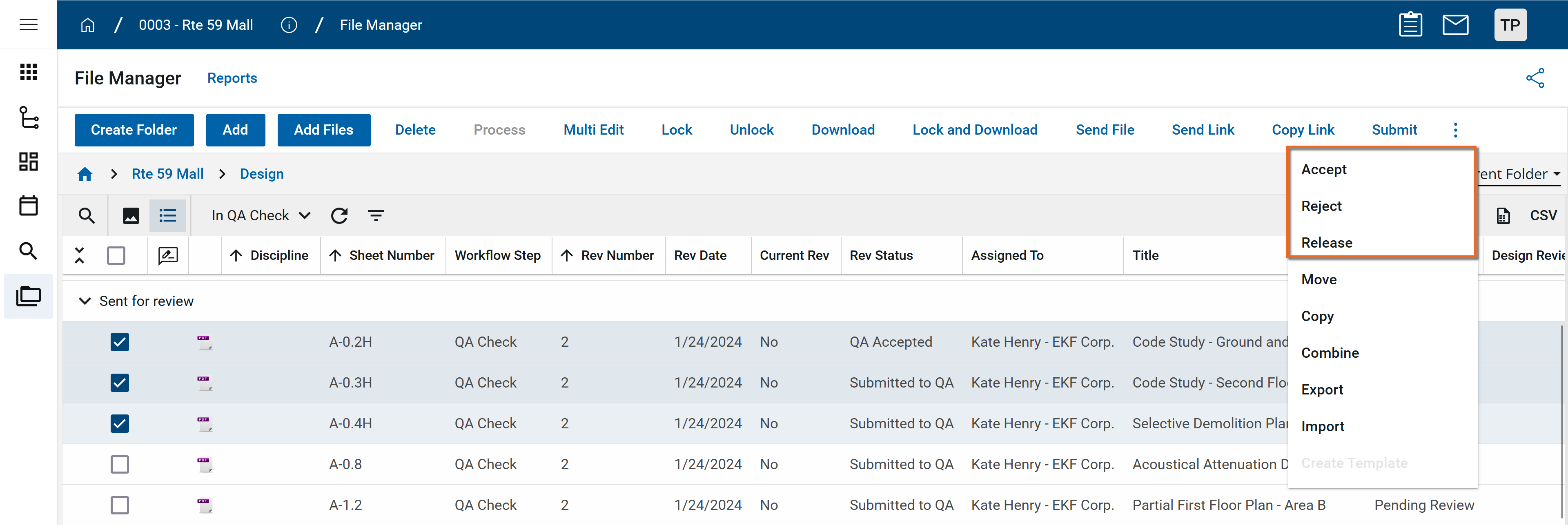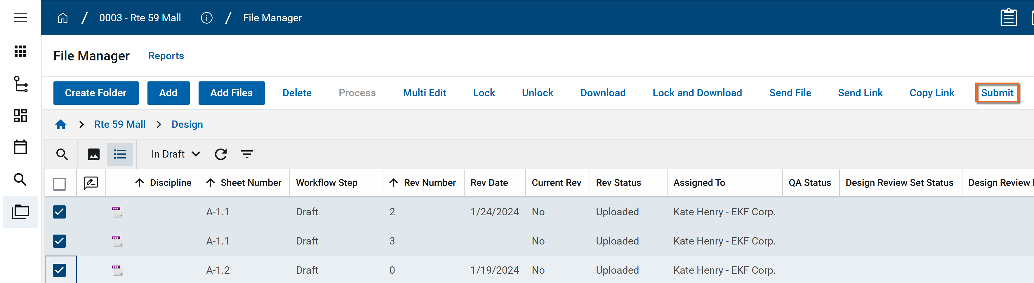 Once drawings and documents have been uploaded to a controlled folder, those files can be released to the current set of revisions directly in File Manager. This means the released revision is the current revision for the project. Drawings and documents can be released without going through the QA process if the review process of the documents is not necessary.