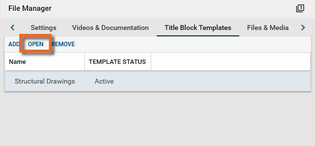To modify or delete a Title Block Template, you must have permissions to configure the File Manager app for your project.