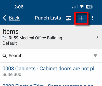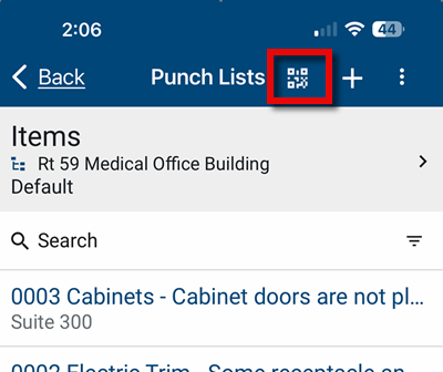 To scan a QR code and review all the punch list items associated with the location assigned to that QR code, complete the following steps: