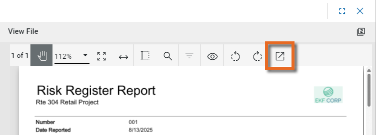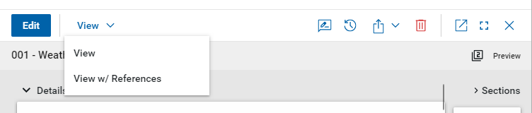 View and View w/References - Select View or View w/References to open a PDF view of the current record. The PDF file can be printed or shared from the viewer by clicking on the Open PDF icon