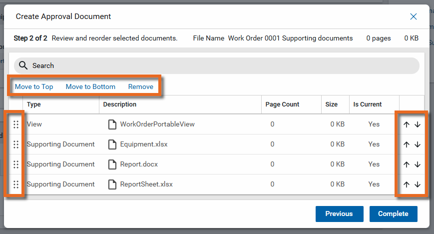 In this next step, you can re-order documents by selecting the grabber icon
