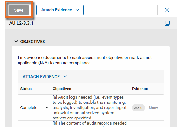Complete - Select this option when the review of this objective is complete and any necessary evidence has been uploaded and linked.