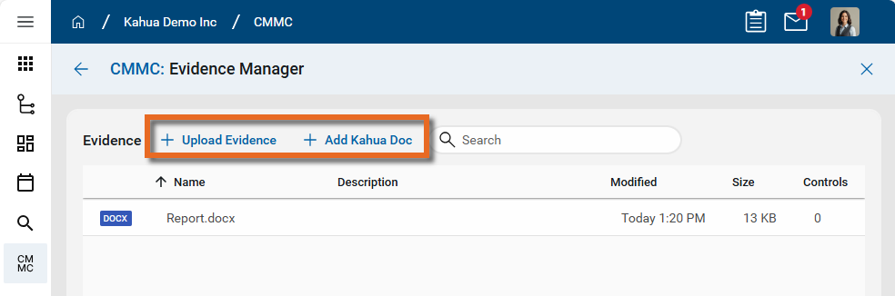 Supporting Evidence documents can be securely uploaded and managed from the Manage Evidence page, or from an individual control or objective.