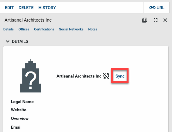 Select the company record you want to sync. The detail page opens.