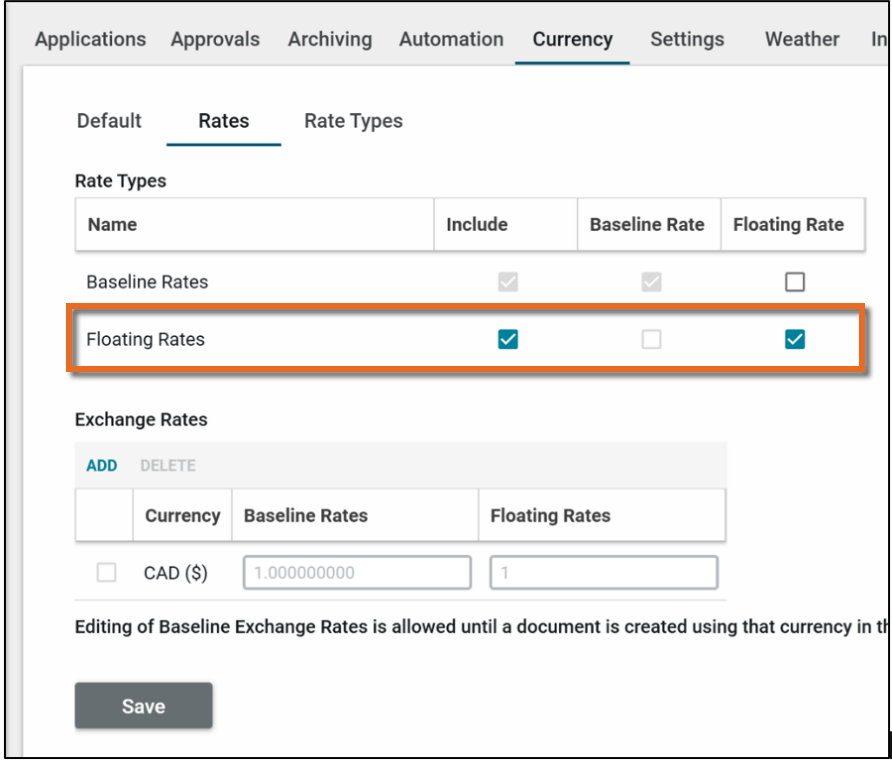 Note Floating rates should be updated regularly as part of the overall cost reporting process. There are no restrictions on editing floating rates.