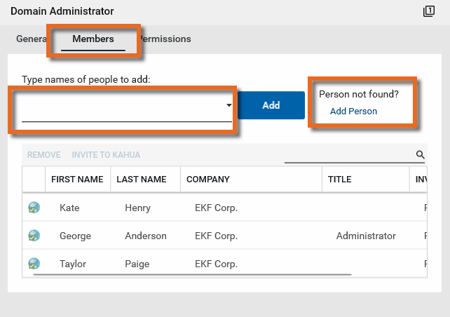 Use these steps to add another administrator to your Kahua domain.