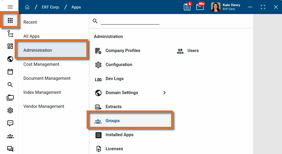 Navigate to the Groups application (Apps > Administration > Groups).