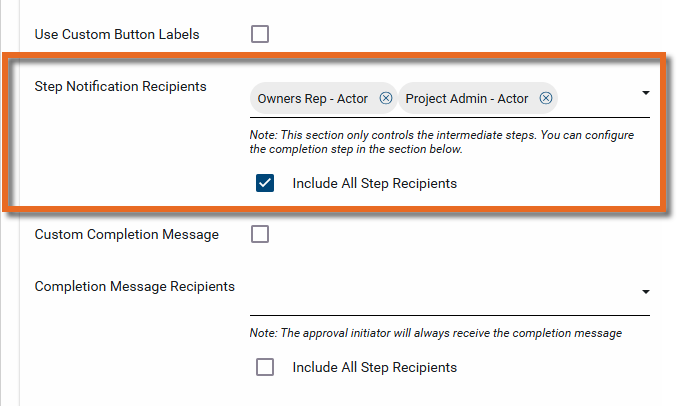 Select Include All Step Recipients to send the step notifications to all the step recipients in the approval workflow.