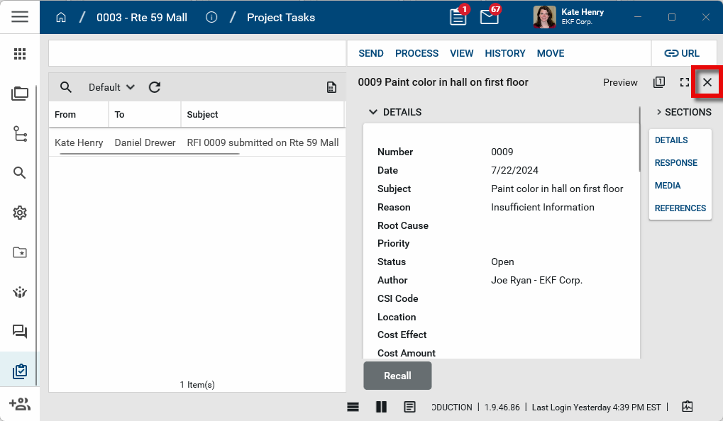 To close the source record, click the Close icon