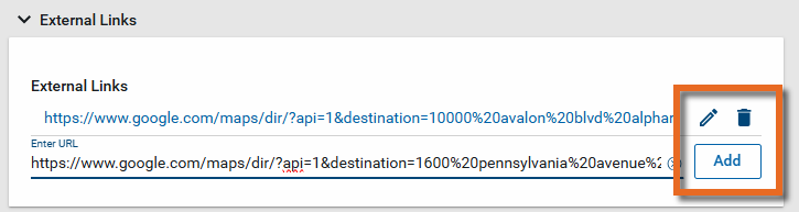 After entering the link, click Add to save it. Once saved, click the Edit icon
