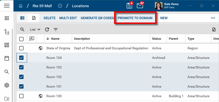 Locations created at the root of your Kahua domain can be included in any project throughout your domain. This acts as a master library of locations that can be re-used in the event multiple projects occur in the same space and provides significant time savings when starting up a new project.