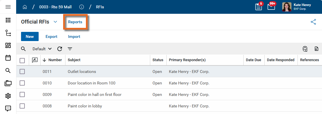 Several project directory reports are available in the Project Directory app. To run a report, click Reports in the application title bar. Select the report and click View or Download. For more detailed information on generating reports, refer to Viewing Reports.