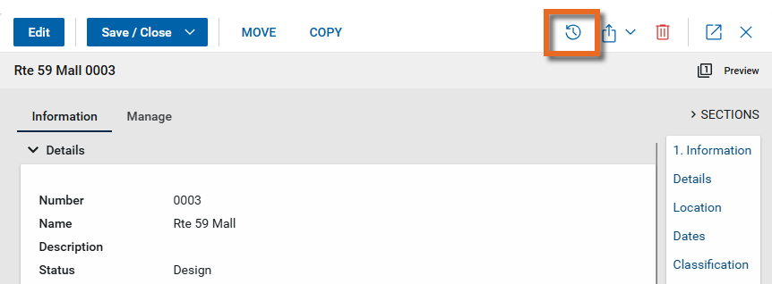 Note The same information can be viewed and edited in the Projects or Portfolio Manager app (Apps > All Apps > Projects or Portfolio Manager). For more information, refer to Projects app or Portfolio Manager.
