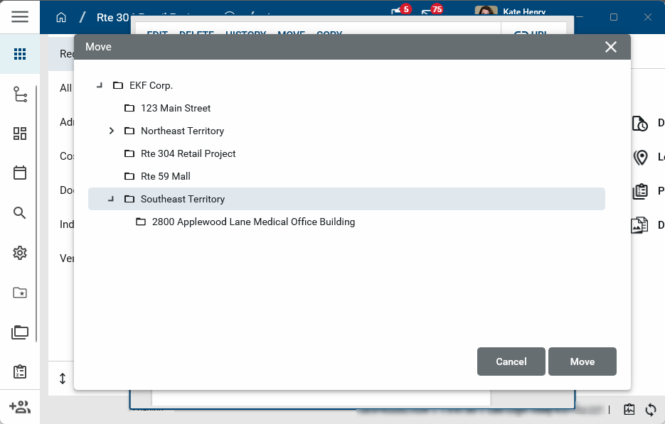 To modify where in the hierarchy the project or partition resides, complete the following steps: