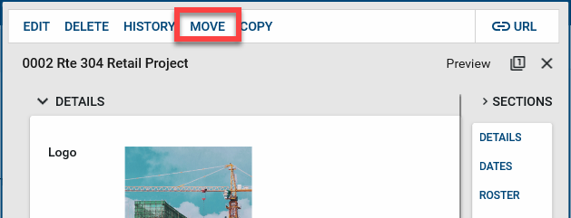 to open partition levels. Select the appropriate location for the project and click Move. -