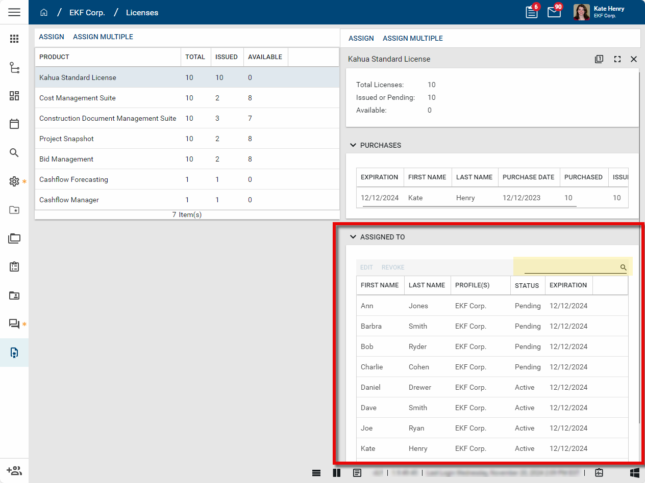 There are different licenses for different components of the Kahua platform. Domain Administrators can assign and revoke user licenses. If you are interested in purchasing additional licenses for your domain, please reach out to your account manager.